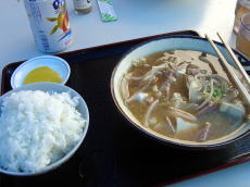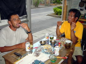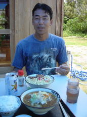 | お昼は港の食堂にて。 与儀さんは沖縄そば 私は味噌汁定食を注文 |