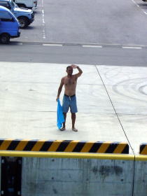 港の売店の横にて | 半端じゃない水量でした 水圧が痛いほどです。 おかげでさっぱりしました。 |