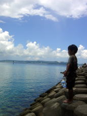 久高着くと島の子供が シジャー(ダツ)がいる!危ない!と 海にいるお兄ちゃんに叫んでいた。 さすがにダツは襲ってこないと思うが、 子供ながら危険がわかるとは 素晴らしいことだし、 兄貴思いの可愛いヤツでした。 |