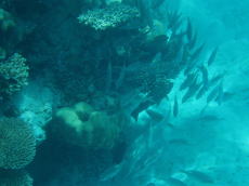 | サンゴに魚が隠れています。 | 宙に浮いているような・・・ | 遥か彼方に積乱雲 | ||