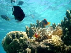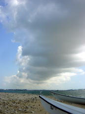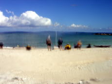 昨夜までは停滞だー!と決めていたものの、台風の影響によりフェリーがどうなるか わからないので、今日中に渡嘉志久ビーチに入ることに決定!午前中、トコブシを これでもかと取りまくり、昼食後、 おなか一杯で眠い中移動。 |