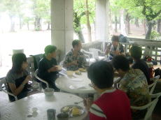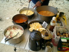 | さあ出発の準備だー! | 須田さんの後ろに田村さん | 2日目の朝食 | |
