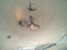 | ブラッシー、ラッシー、 儀志布、フーチバー、テビチ。 勝手に名前を付けられ、穴に落とされ 遊ばれるヤドカリたち。 これが結構白熱する。 |