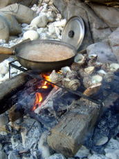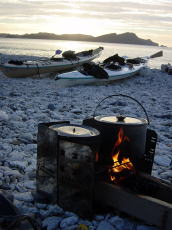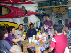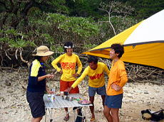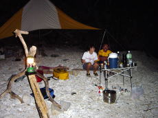 儀志布での夕食作りの風景。 | 安室島を南下中の佐藤さん! 悔しそうに一日早く那覇へと 戻っていきました(笑) |