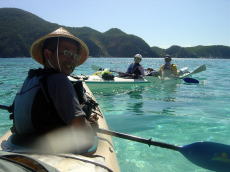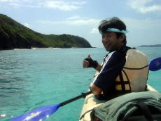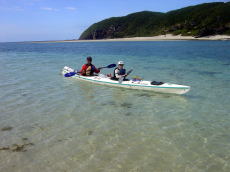 | 巌さん&優子さん 優子さんは初めてのシーカヤックでした。 天気が良く、海の状況も良かったので 本当に幸運な初体験となりました。 |