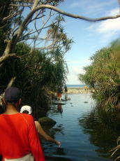 ジャングルトレッキングみたいですね〜。 この川にはウナギもいるんですよ。 |