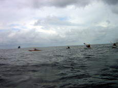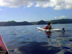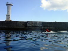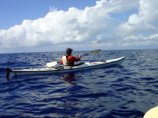 | 2回目の佐藤さん。出発して3分で、 沈した時は、 シングル艇を選択した自分の判断が 間違ったかな〜と思いました。 しかし、徐々にパドルのフォームもそれなりになって、最後帰り際には ビュんビュン飛ばして漕いでいました。 |