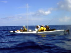 | この時はまだ、ラダーが正常に動いていたが、北名城へ向かってる途中「酒井さん!ちょっとラダーが動かないんで見てもらって良いですか?」「いいよ〜、横に着けて」 「・・・」 「折れてる・・・」 突然ラダーが折れてしまった。 そこで、コースを短く変更し 塩崎へと向かう。 セットで最高の波がたち、サーフィンして しまいました。 そこで井上さんから「オチがない」と ダメだしを頂きました(笑) |