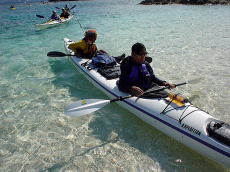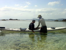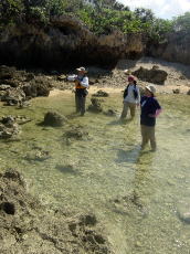 寺田さんによるロール講習が イノー(サンゴによるプール)で 始まりました。 この後、陸朗君、橋口さんが続く・・・ |