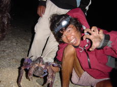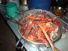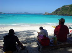 | 渡嘉志久ビーチで海を見ながら昼食 | ハナレの山の上から | 激ヤバ! ヤドカリとイセエビの コラボーレーションマース煮 |