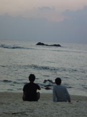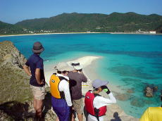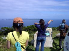 | 車で展望台へ。 暑くなく風が気持ちいい。 沖縄本島もかすかに見ることが出来ました。 |