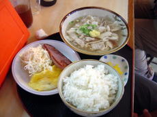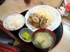 | 糸満港に入り、定食屋さんへ。 豚のしょうが焼き定食 |