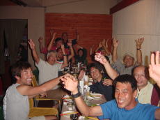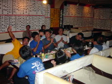 | 「神楽座」という私は初めてのところで 打ち上げを行いました。皆様方は前泊時 にもいらしゃたそうで2回目です! |