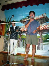 プロに負けじと高秀さん! 歌詞カードなしで 「オジー自慢のオリオンビール」を熱唱中。 笑えました(笑) |