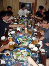 | 「宮古根」で本当の打ち上げがスタート。 | う〜ん、上手い! さすがプロである。 |
