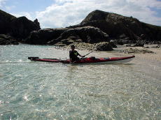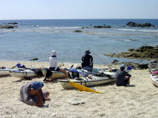 猛烈な北風を漕ぎ進んで 渡嘉志久ビーチに入り一休憩。 |