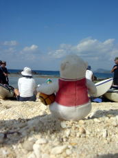 ビーチを離れようとパッキングしている 僕らを見ている白熊。 背中がなんだか悲しそうだ・・・ この白熊のぬいぐるみが慶良間いたるところに打ち上げられている! |