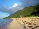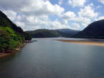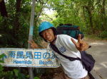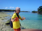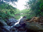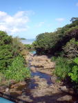 歩いて5分もしない所に綺麗な沢が海に流れていました。 |