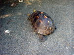 隙間無く納まるのヤエヤマセマルハコガメ(天然記念物)。蛇の死骸を咥えて道路を横断していました。 |