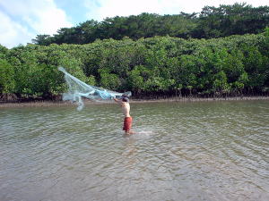 投網でアシキンと西表では言っていました。その場で指で裁いて食べる。