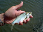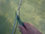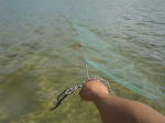 男だったらこれがたまらなく面白いのです。ポイントで左右に広がって歩いて、網が伸びきると、次は岸へ歩いきながら網を見る、魚が跳ねたりしたら、すぐに囲むように円を作りその中で掛かった魚を手で獲る。これまた楽しい! |
