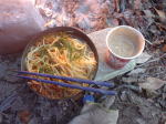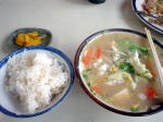 | 朝ご飯は玄米と味噌汁と黄な粉の団子!ツアー以外は質素なのです(笑) |