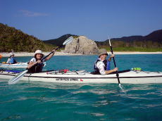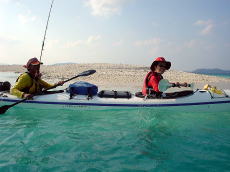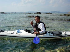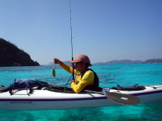| 藤井さん「ツールド沖縄」完走お疲れさまでした。 昨日、80Kmも自転車レースに参加した後日に、シーカヤックなんて 並の体力の持ち主ではない〜! 普通は休息日でしょ? 80kmも自転車で走るなんて考えられない、 200kmのレースもあるそうです。自転車の世界は恐ろしい〜。 那覇マラソンの後にツアーみたいな感じですよね、 わたしゃあ断るよ(笑) 藤井さんが沖縄に来るといつも晴れ! 奥武島から塩崎(糸満)までの約15km。 カヤックから釣りをしながら、アタリはたくさんあるのだが、 ルアーに掛からない(涙) 巌さん優子さんご結婚1周年おめでとうございます。 末永くお幸せに!(酒井) |