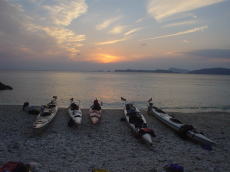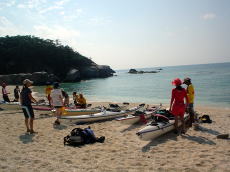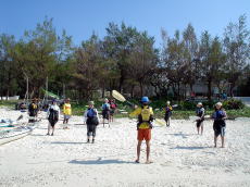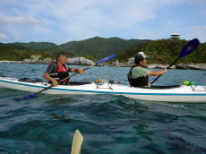 | 5名がシーカヤック初めてで 出艇前にパドリングの講習を行いました。 初めての人でも大丈夫なんですよ〜♪ |
