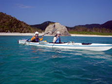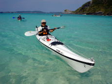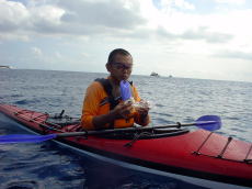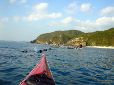 カヤックをアンカーリングして 沖合いでシュノーケリング。 |
