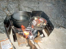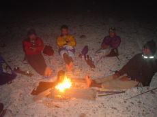 夜は寒いので足を焚き火にあて 暖をとる。これが気持ちが良い。 |