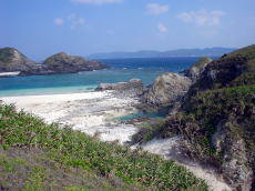 | 3泊目は渡嘉敷のヒヤルガでキャンプ ここに来るのは9月ぶり! 昼食後、買出しとハナレへ散歩に出かける。 |