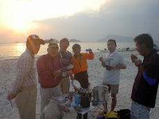 | 夕焼けが綺麗でした。 | 最終日の午前中に裸で海に入って行った おじさん達(笑) ”次があるかわからないからね〜” 最後まで一生懸命楽しんでしました。 |