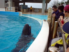「イルカラグーン」 イルカの観察会で、こんなに近くで イルカを見ることが出来ます。 写真はオキゴンドウです。 |
