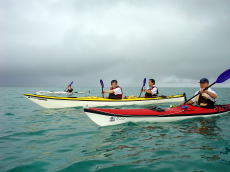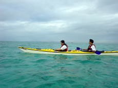 | 仕事を終わらせ、日帰りツアーに参加された4人組! 漕店の事務所に8:00に集合した時は大雨になり、 夕方から雨という予報は何だったんだー!朝から雨じゃん!!! 車で出発地の瀬長島に到着したときは、幸運にも雨が止み、 べた凪でほとんど無風の中、快適に岡波岩まで行く事ができました。 昼食を済ませた時に、また雨が降り出す。 でも、上手い具合に雨を交わしながらのツアーでした。 カヤックを車に積んで、事務所に戻る時は、ものすごい雨! こんなに降ったのは久しぶりでした。 雨のせいか、蒸し暑い日でした、12月なのに・・・ |