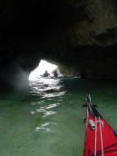 | 渡嘉志久ビーチから南へ | 阿波連のカヤックでくぐれる洞窟 | ハナレ島の上にて |