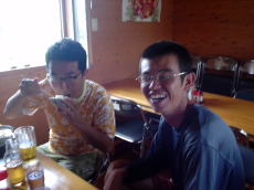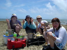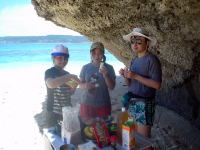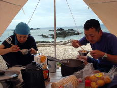 | 皆で捕ったマガキガイがつまみです。 | 飲んで食べて寝る! OK!問題な〜い! |