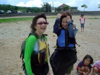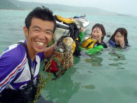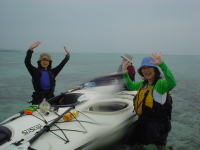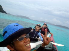 | 昨日、去年より4日遅い梅雨明けになりました。高気圧に見舞われ最高の天気!南のからの風も心地よい感じで暑さを和らげてくれます。いつもは石井さんの一人での参加ばかりでしたが、今回娘さんたちがシーカヤックに初挑戦! 志喜屋を出発しコマカ島まで、約1時間のパドリングです。島に着いて早々に泳ぎ始め、試しに餌(パン)をあげてみるとあっという間に魚に囲まれ、魚に餌を催促されそうで、ムッとしてしまう(♪)恐ろしい程人間を恐れていない。 「娘と遊ぶのこともこれから少なくなるからね〜」とお父さんならならではの悩みもこぼれていましたが、、海で娘を肩に乗せ後ろへ投げ飛ばし、キャーキャー遊んでるようじゃ〜まだまだ大丈夫ですから〜(笑) ゆうきちゃん、まなちゃん!お父さんからいろんな遊びを学ばなきゃね♪お父さんより遊ばないといけないよ! 俺も英語をちょっと勉強してみようかしら♪ まずはアメリカンスクールに入学して、モデルの子とお友達になるのだ・・・ウヒヒ。。。♪ |