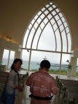 | 先日(5/29)たかしゅう兄さんといまい姉さんの結婚式場となる万座全日空ホテルのチャペルを見学しに行くのに、迷惑もかえりみず、 お供させていただきホテルに泊まってもないのに、泊まったくらい満喫させていただきました。それにしても豪華〜! 船員会館3500円!もうちょっと贅沢して東横インなら5000円くらいだよ〜なんて会話が掻き消されそうなさ燦々たるリゾートホテルの優雅さ! まあ〜比べちゃ失礼かな? ホテルに入ると吹き抜けのロビーがゆうに船員会館がまるごと入ってしまいそうな勢い! 思わず島ぞうり脱いで入りそうになりました(笑) 場違いな所へくると、どうもドキドキしてしょうがないし、キョロキョロしてしまう。 そんな中、落ちつたお二人に付いていきました。 |