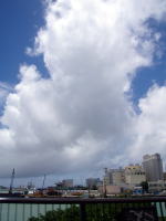 | 今日からカーチベーか〜? いつもこの時期からカーチベーという南西の風が 吹きだすと沖縄の夏の始まりです。 昨日は糸満ハーリーだったし、まちがいないカーチベーだ! 空が夏だぞ〜って言ってるように聞こえたので 一枚撮ってみました♪ 雲の白と空の青のコントラストが好きなんだな〜♪ 今日は31度だ、暑いはずです。 たかが31度というけれど、どんなに暑い日でも 沖縄は32,31度です。 だから、関東とかに気温を比べると かなり涼しいことになる。 |