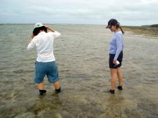 | 飯塚&白井 チーム | 山本&新井 チーム | 干潮で干上がってしまい、 引きながら移動しました。 |