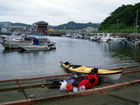 カヤックから「フリーダム」の植村さんに連絡して”今ね〜九十九島だから、会えます?”ってそりゃあ植村さんもビックリするはずだ。ちょうどツアーが終わったところで、佐世保カヤックセンターからカヤックを上げさせていただきました。 | |