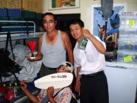 | カヤックを借していただいた勝山さんとカヤックを運んでくれた宗徳。 お忙しい中ありがとうございました♪ |