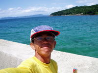 昨晩はこの近くの公園で寝てましたが、公園の外灯に犬が一匹どう見ても僕を睨んで”ワンワン”吠えている。ワンワンと書くと可愛いが、夜中に突然うなり声をだして吠えられると怖い!いちど起きてその犬を追い掛け回したら、あきらめたのか吠えなくなった♪ | 出発して黒崎の沖合いで手のひらくらいのシーラがすぐ釣れました。あいにくクーラーも何も準備してなかったので、リリースしました。 | |