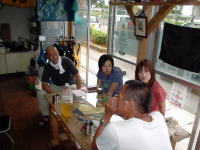 | 台風接近のメール見るが、9/8とにかく沖縄に来ててみた根性ある東北からの刺客3人♪ケラマツアーが中止になってしまうので、この日程の遊び方を漕店で打ち合わせ中!ギリギリ明日(9/9)は日帰りツアーを決行することに決定! | 瀬長島から岡波岩を目指す。台風の影響で風は東よりの風が強い日で、沖合いにはスコールがところどころに見えて、へんてこな天気でした。 | 各自自由に昼食を済ませて、ヤドカリ観察。この時はめっちゃ晴れてたからラッキーでした。 | |