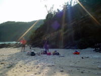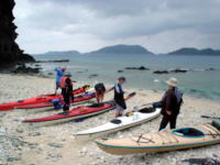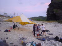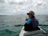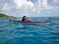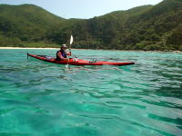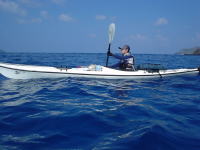 | 日陰で昼食。2003年の正月、雨宿りした洞窟を見て、ここで起こった過酷な日帰りツアーの記憶が・・・(笑) | 午前中よりも、はるかに海が静かになって、追い風だから、自然と脳みそのネジがゆるみ、にやけてしまう!笑顔ではなく、ニヤけてしまうんです!自分が気づかない内に(笑) | ||