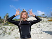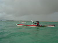 今回のケラマのために、練習に行ったそうです。一日でも海に行けて良かったですね〜♪小林さん! | 岩井沢さんの奥側(東)にはどんよりと雨雲が近づいてくるのが見えています。あと5分もたたず雨ですね。 | |