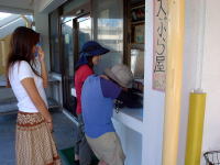 | アグから阿嘉港へまずは買出しに! 村の3ヵ所の売店を周って、氷が一袋しかない〜、夜まで持つだろうか? |