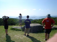 安室島を発つ頃、どんより空が黒くなってきました。海峡を渡るころ雨が降ってきました!やっぱり嵐コンビのせいかしら♪ | 港のピッコロで昼食を済ませて展望台へ。北よりの風がずいぶん冷たくなって秋の気配を感じました。まだまだ日差しが強いので、冷たい風が気持ちが良い。 | |