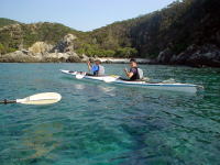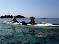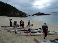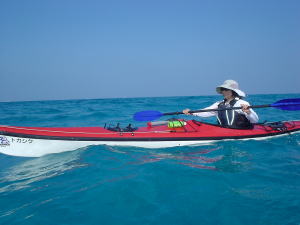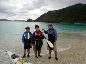 | 安室島より南下する長男次男 | 家族の団結でカヤックを運ぶ。 | 最終日はいつもべた凪なんだよね。 |