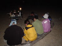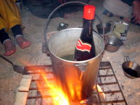 | 大きな流木がちょうど良いベンチとなる。 夕食はチゲ鍋!寒い時は鍋に限る♪ |